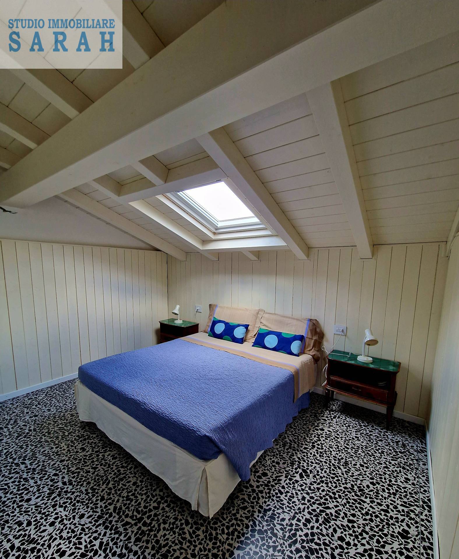 Al piano superiore troviamo un mini appartamento con cucinotto, bagno con vasca e doccia, due camere mansardate, la stanza armadi e la zona lavanderia.